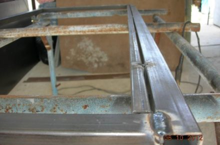Далее нужно приварить ребра жесткости. Используется минимум один уголок. Его располагают посредине полотна. Если вы хотите укрепить дополнительно, можно установить еще один или два, в зависимости от общего веса конструкции. В конце работ все швы нужно зачистить болгаркой с использованием шлифовальных насадок.