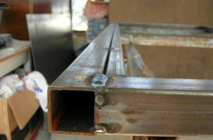 На следующем этапе необходимо сварить конструкцию. Соединяем между собой детали каркаса. Следим за тем, чтобы не произошло смещение диагонали. Вначале рекомендуется сделать прихватку, чтобы убедиться в правильном положении уголков. Если все размеры сходятся, можно продолжить варить. Для этого используют двухсторонний шов.