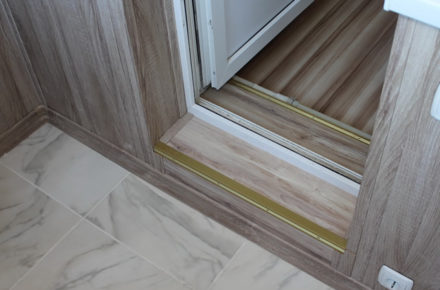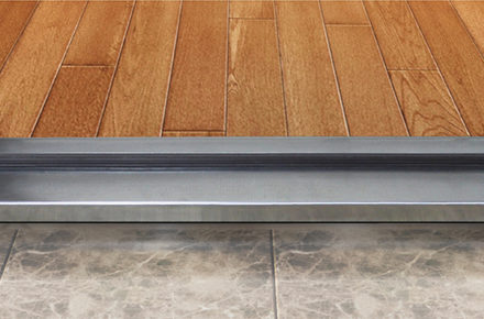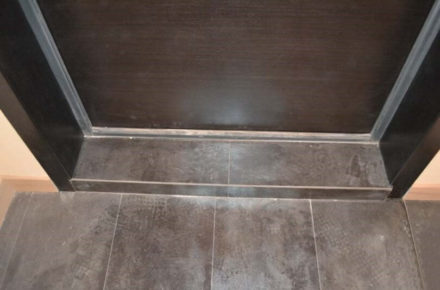 - Степень прилегания. Для герметизации дверного проема нужно подбирать совпадающий по размерам и форме порог. Лучше заказывать его сразу вместе с коробом. Для простого разграничения пространства достаточно будет пластиковой или металлической плоской накладки.