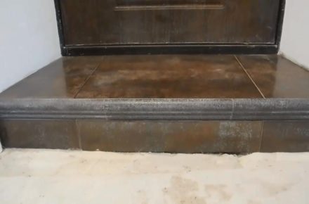 Сделать такой порог самостоятельно можно из кирпича или бетона. В последнем случае для заливки раствора вам потребуется соорудить небольшую опалубку из досок или фанеры.