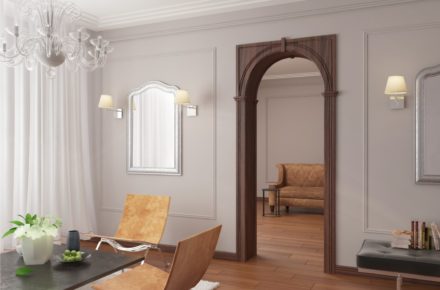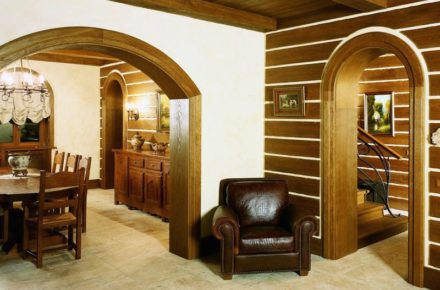 Финальное оформление дверных проемов и арок заключается в маскировке стыков и креплений. Дерево обязательно нужно обработать антисептиком еще до установки. ДВП, скорее всего, уже будет пропитано защитными веществами.