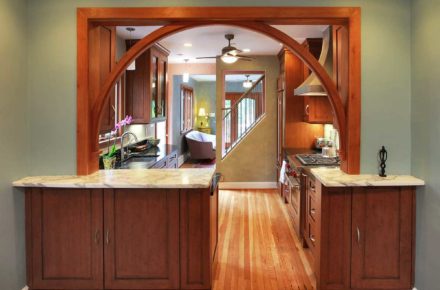 Процесс изготовления также ничем не отличается. Главное требование для межкомнатных арок – правильно подготовить проем. Делая замеры и распил, следите чтобы все детали встали на место при сборке конструкции.